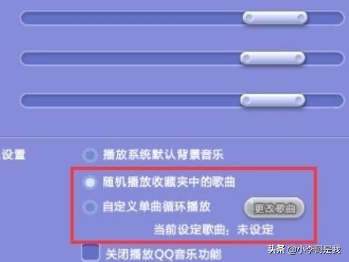 3、打开音乐功能后,可以看出随机播放和自定义循环播放已经开启。
