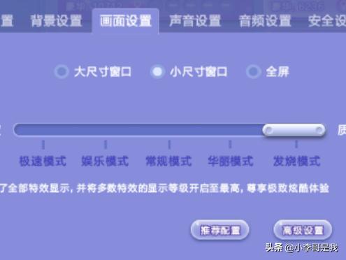 6、画面设置:切换到系统设置的画面设置页面,可以选择画面质量和显示模式。