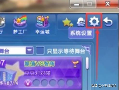 1、登录炫舞,进入游戏大厅,点击右上角的【系统设置】,进入系统编辑页面。
